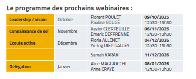 Par ailleurs, 5 webinaires ont été organises dans le cadre de l’accompagnement des alumni dans leur parcours professionnel, sous le pilotage de l’équipe de coachs de Centrale Coaching qui nous accompagne.