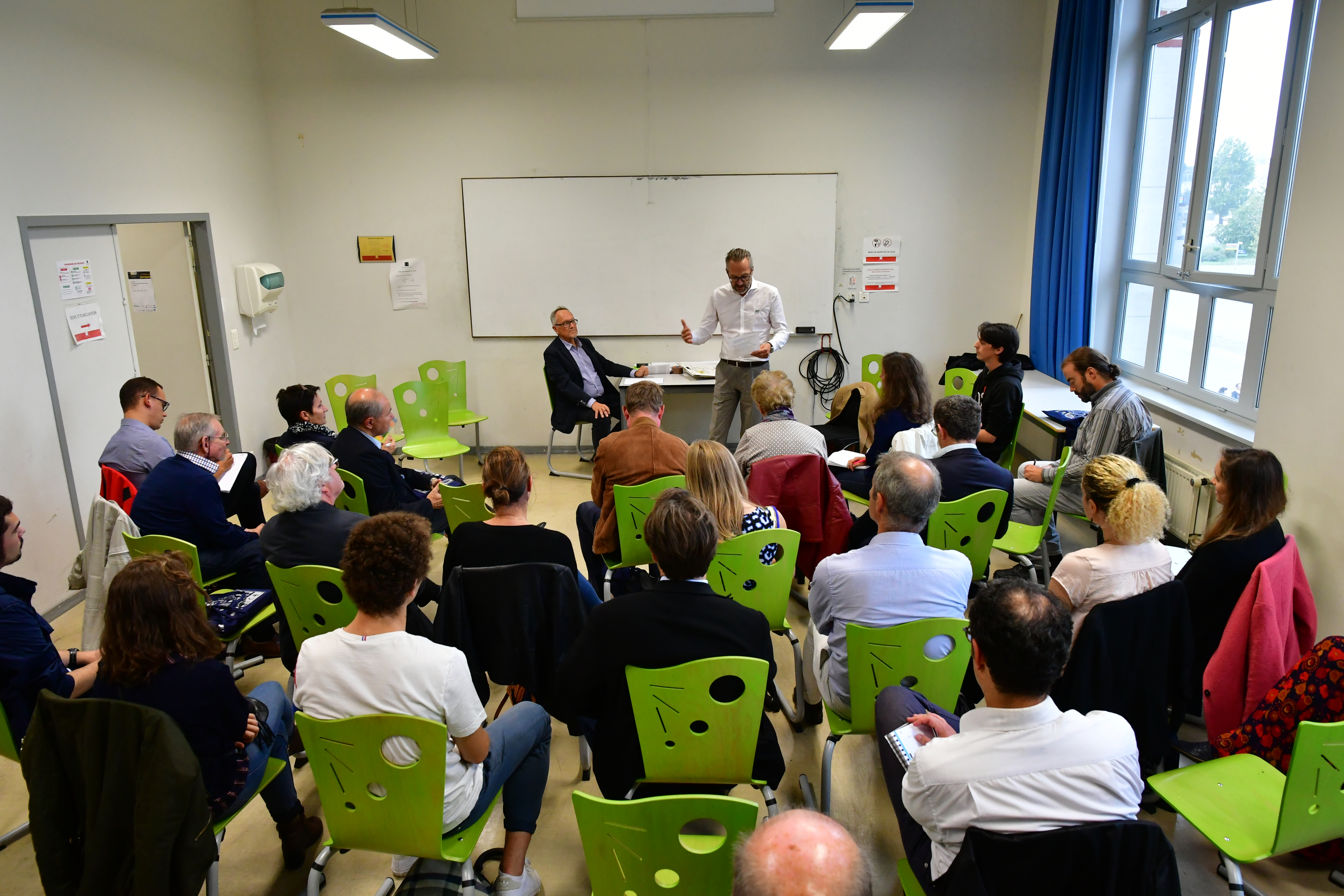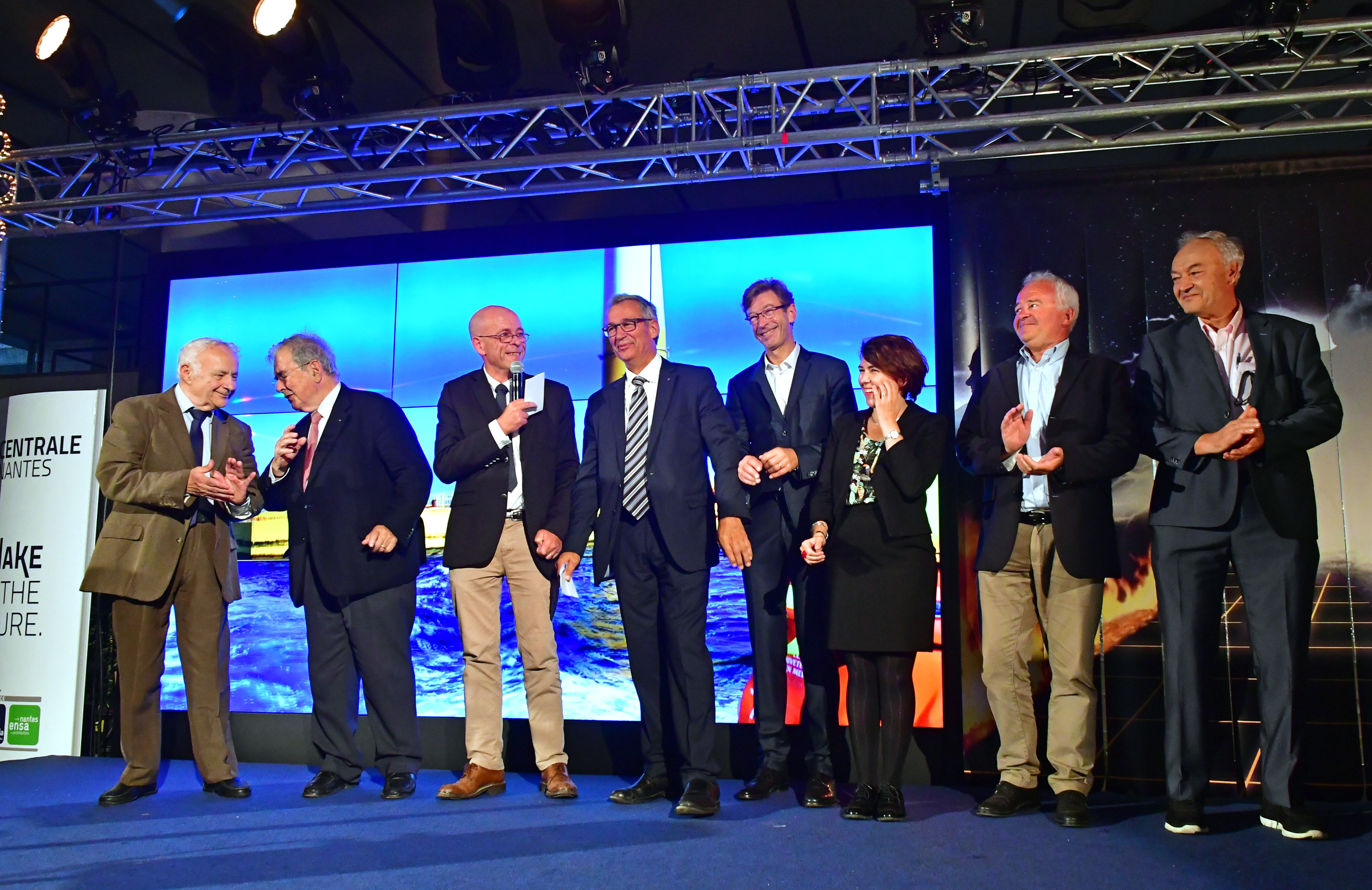 avec les discours de Johanna Rolland, Maire de Nantes, Laurent DEJOIE, Vice-Président du Conseil Régional des Pays de la Loire, William MAROIS, Recteur de la région académique Pays de la Loire et de l'académie de Nantes, Chancelier des universités et Florence MAUDUIT, représentante de Chantiers de l'Atlantique, Responsable d’affaires du C34 et Diplômée de Centrale Nantes.