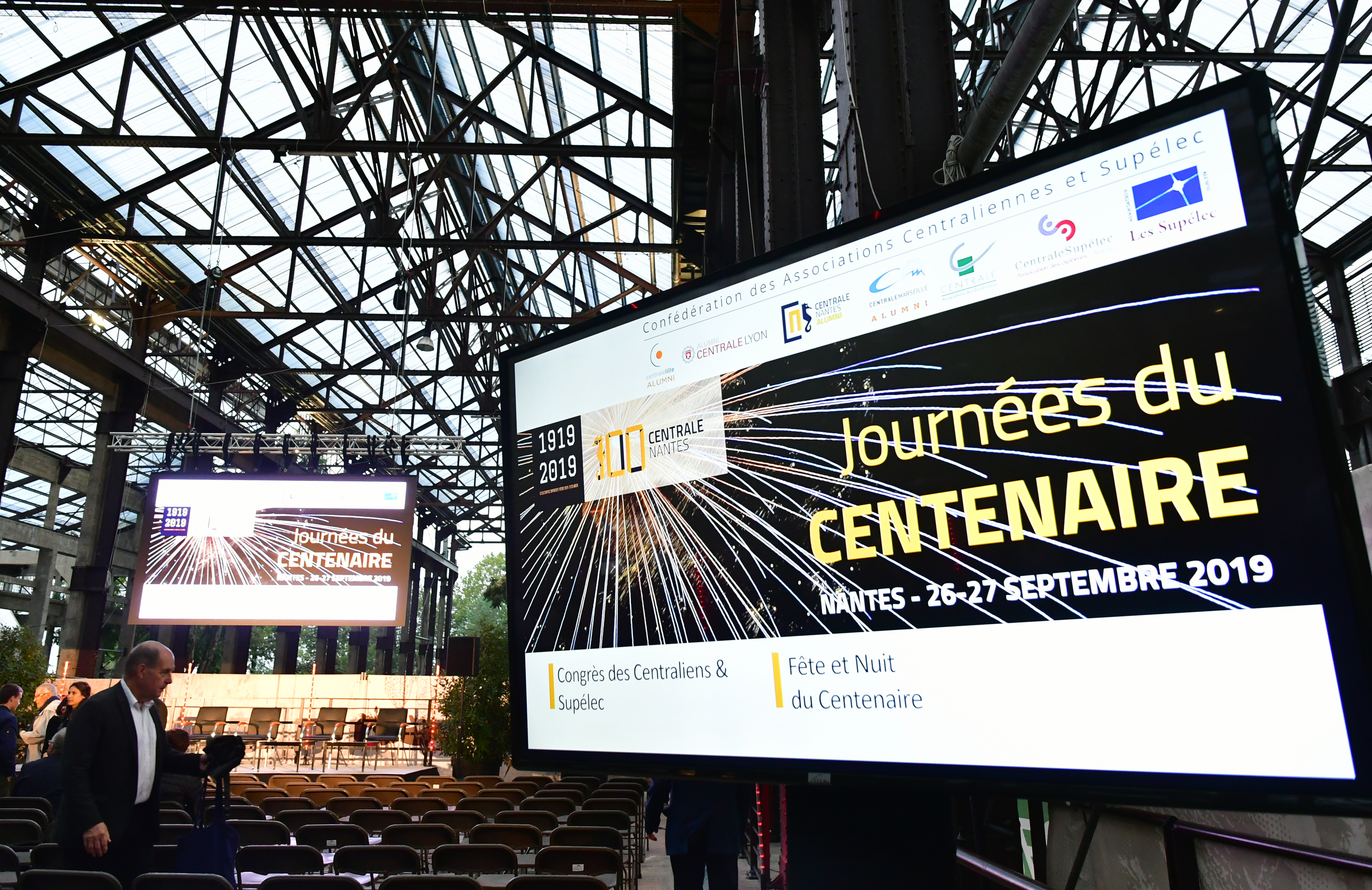 Grâce à la mobilisation des diplômés, de l'équipe Alumni, des services de Centrale Nantes, ces 2 journées ont permis aux participants de réfléchir ensemble sur l'ingénieur au XXIème siècle avec le philosophe Boris Sirbey entouré d'1 diplômé, 1 étudiant et 1 enseignant sous les Nefs des Machines de l'Ile, de fêter ces 100 ans sur un campus transformé pour un Retour vers le Futur et 3 ambiances pour 2000 centraliens en folie, couronné par un inoubliable feu d'artifice. Merci à tous ceux qui ont donné de leur temps ou contribué à ces événements.